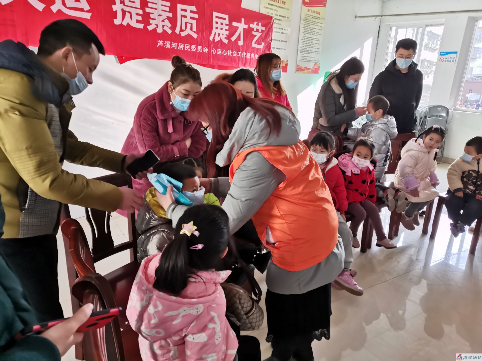 共15位小朋友经过体温检测、家长健康码、带好口罩后参加了本次《过大年》故事解读。