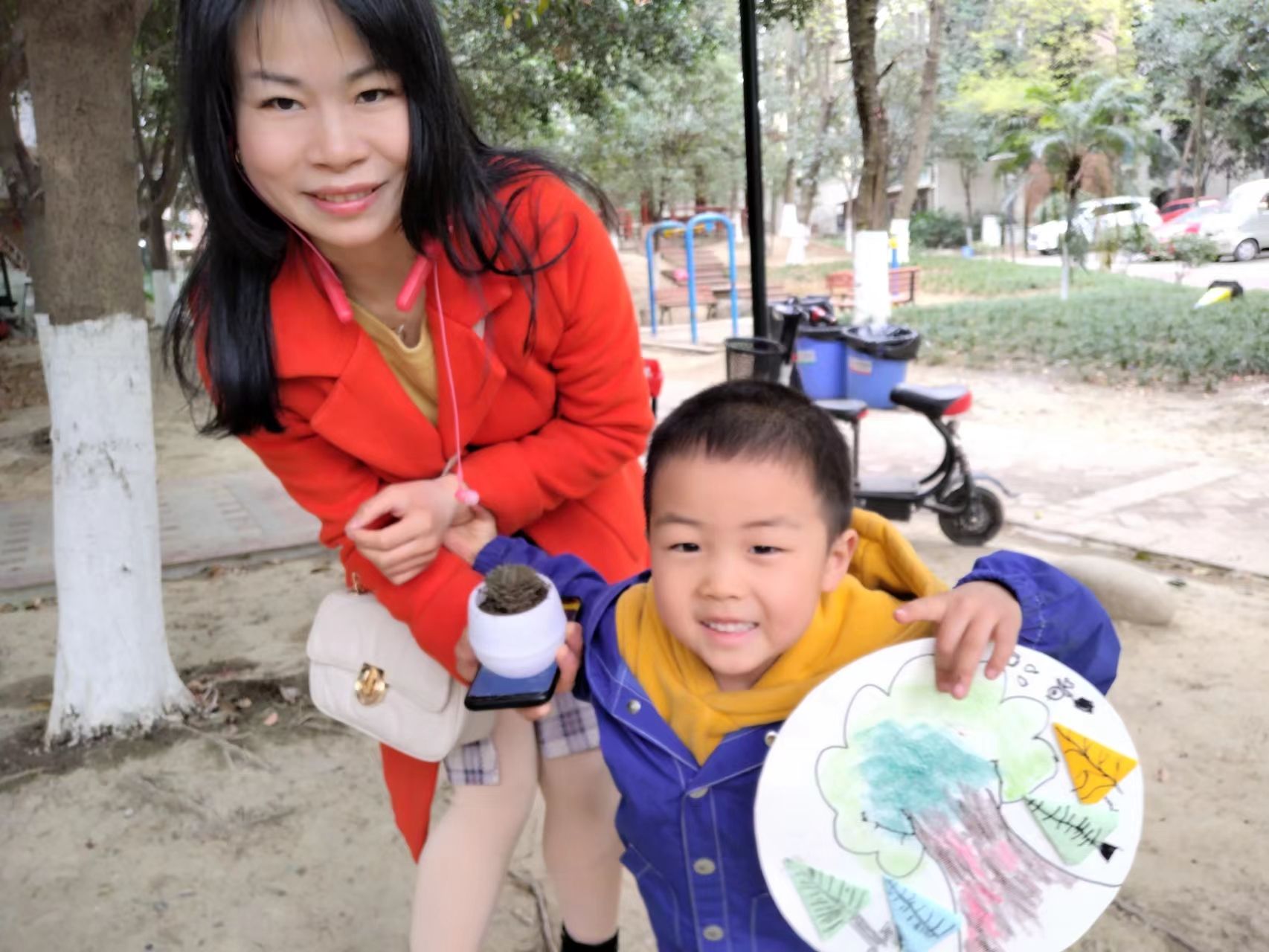 活动内容:绘本故事《和平树》+亲子绘画《树》+种绿植《种下一棵种植》